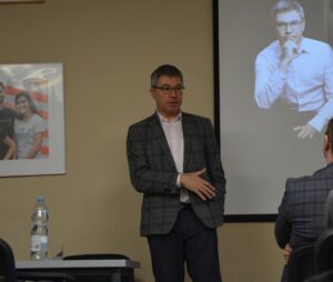 Maciej Klimarczyk, absolwent z roku 1994 odwiedził dziś naszą szkołę. Spotkał się z dwiema grupami uczniów. W pierwszym spotkaniu wzięli udział uczniowie z biol-chemów i rozmawiali z naszym gościem, który jest doktorem nauk medycznych, psychiatrą, psychoterapeutą i seksuologiem, na temat zdrowia psychicznego. Doktor Klimarczyk ciekawie i przystępnie opowiedział o tym, co sami możemy zrobić dla siebie. Podkreślił znaczenie zachowania naturalnego rytmu dobowego, snu, unikania nadmiaru bodźców, a także ważnej roli pasji i dbania o relacje z ludźmi. Te rady, choć mogą wydawać się banalne, naprawdę są skuteczne.