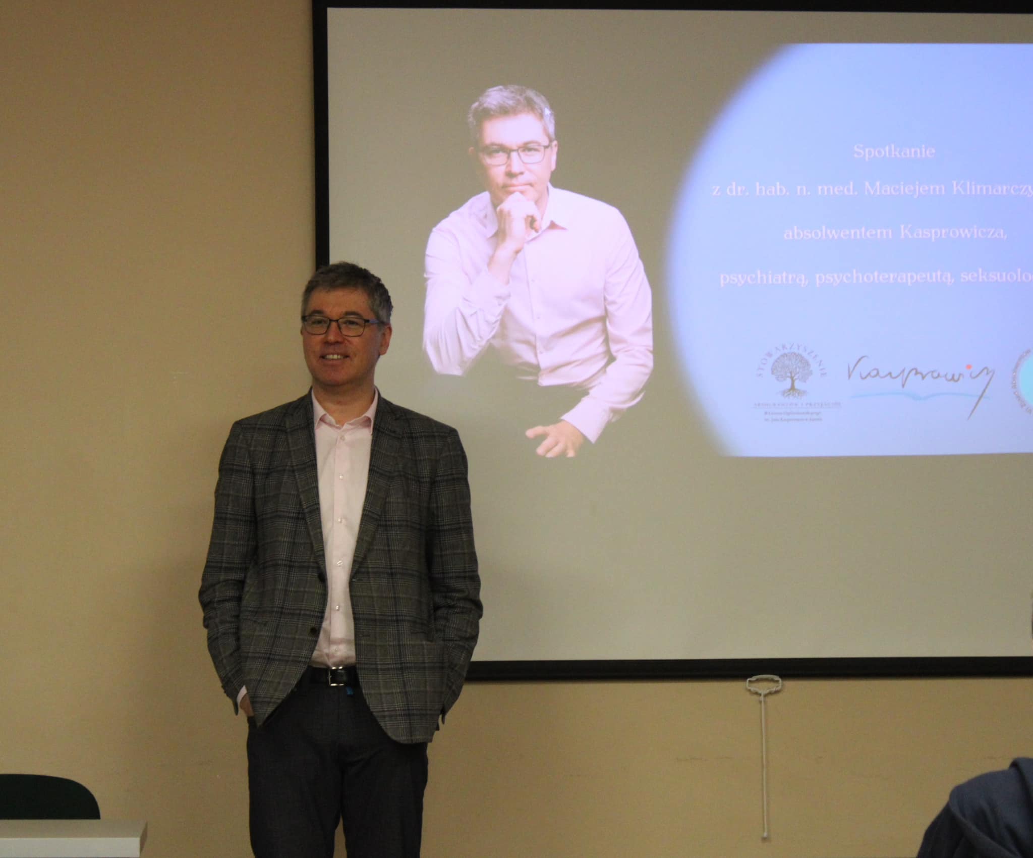 Maciej Klimarczyk, absolwent z roku 1994 odwiedził dziś naszą szkołę. Spotkał się z dwiema grupami uczniów. W pierwszym spotkaniu wzięli udział uczniowie z biol-chemów i rozmawiali z naszym gościem, który jest doktorem nauk medycznych, psychiatrą, psychoterapeutą i seksuologiem, na temat zdrowia psychicznego. Doktor Klimarczyk ciekawie i przystępnie opowiedział o tym, co sami możemy zrobić dla siebie. Podkreślił znaczenie zachowania naturalnego rytmu dobowego, snu, unikania nadmiaru bodźców, a także ważnej roli pasji i dbania o relacje z ludźmi. Te rady, choć mogą wydawać się banalne, naprawdę są skuteczne.