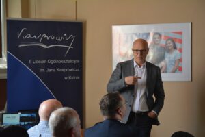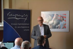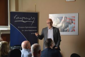 Pan Profesor zabrał nas w fascynującą podróż do swojej szkolnej przeszłości, pełnej inspirujących doświadczeń i przeżyć. Przedstawił ścieżkę swojej kariery zawodowej. Podczas wystąpienia wspominał lata spędzone w Liceum. Mogliśmy się przekonać, że nasz Kasprowicz nadal jest Mu bliski.